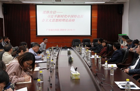 研究院党支部和工会承办“习近平新时代中国特色社会主义思想解读”和“粤港澳科技创新发展”专题党课 发表日期:2018-11-26 2018年11月23日下午,由开发区科技创新局党总支主办,我院党支部和工会承办的“习近平新时代中国特色社会主义思想解读”和“粤港澳科技创新发展”专题党课在开发区管委会B栋216会议室举行。广东省社科院科技与社会发展研究中心廖胜华副研究员、广东海上丝绸之路研究院执行院长邓江年研究员两位专家作主讲。开发区科技创新局机关党支部党员、浙江大学华南技术研究院党支部党员、我院党支部党员和工会部分会员参加了学习。