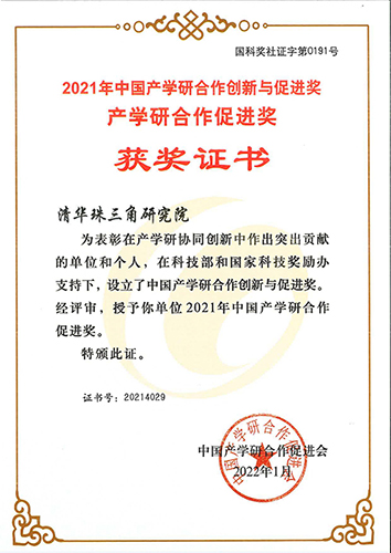 我院荣获2021年中国产学研合作促进奖 发表日期:2022-01-14 近日,中国产学研合作促进会发布《关于2021年中国产学研合作促进会产学研合作创新与促进奖的表彰决定》及获奖名单,我院荣获2021年中国产学研合作促进奖。 中国产学研合作促进会产学研合作创新与促进奖由国家科技奖励工作办公室批准设立,是在构建以企业为主体、市场为导向、产学研深度融合的技术创新体系中,面向产学研界设立的协同创新最高荣誉奖。